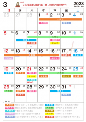 【開催内容】吉日カレンダー3月版