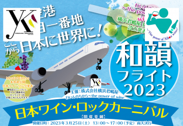 この度、横浜君嶋屋日本ワイン館設立発表記念と共に、全国のワイナリーの約50社に参集して頂き、日本ワインを幅広く知っていただくことを目的として「和韻フライト2023~日本ワイン・ロックカーニバル」を日本の表玄関・羽田にて開催いたします。飛行機が飛び交う空の下、全国から集まる造り手と共にワインと音楽に酔いしれるひとときをお過ごしください。