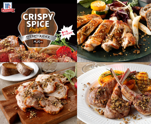 当社はこれまで、トッピングとシーズニングをそれぞれ開発していましたが、2つの良いところを組み合わせて、「食べるシーズニング、(調味料として)味付けのトッピング」をコンセプトとして開発を進めました。その成果として、マコーミックの持つスパイス力をかけ合わせた、カリカリと食べられる「クリスピースパイス ペパー」が誕生しました。