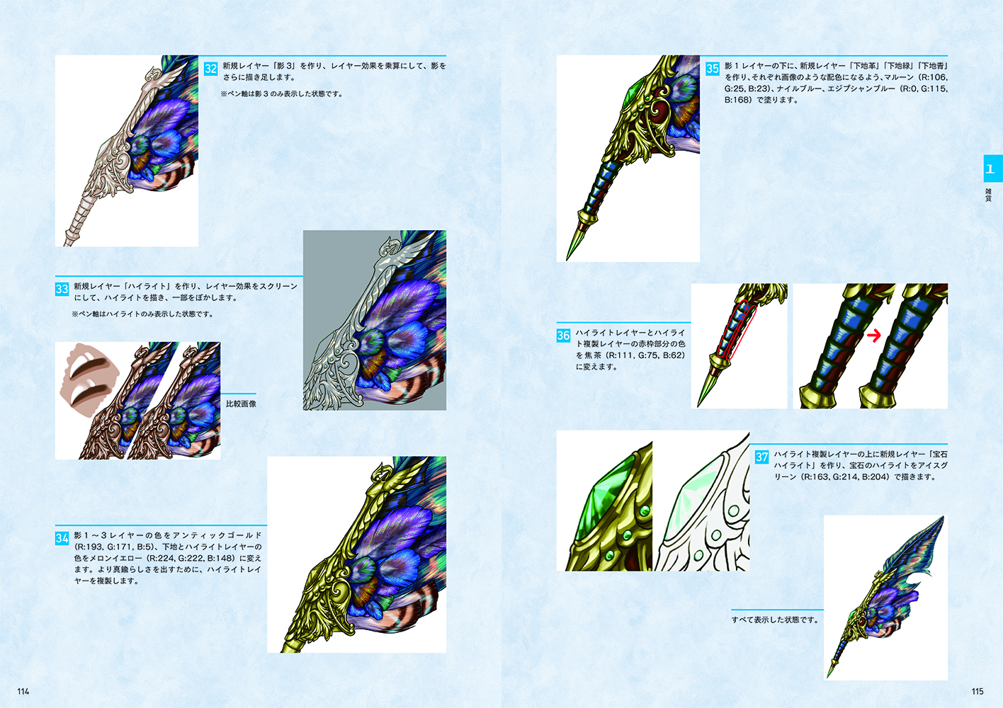 レイヤー付きのPhotoshopデータをダウンロードして読み進められるので、イラストレーターの方にはアイテム制作の指南書として、