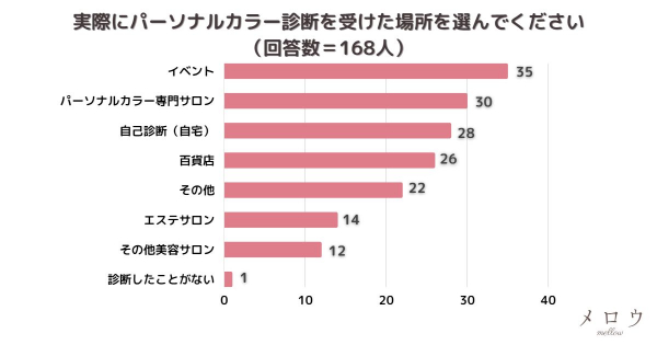 「実際にパーソナルカラー診断を受けた場所を選んでください」とアンケート調査した結果、1位は『イベント』でした。