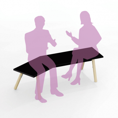 Artek(アルテック)は1935年にフィンランドの建築家のアルヴァ・アールト、アイノ・アールト、マイレ・グリクセン、ニルス=グスタフ・ハールがヘルシンキに設立したインテリアのブランドです。2017年発表のキーラベンチは、ノルウェーのデザイナーのDaniel Rybakken(ダニエル・リーバッケン)氏が、アールトに敬意を払いつつ、カメラの三脚の安定性にヒントを得て、くさび(フィンランド語でキーラ)をイメージした脚に黒い真っ直ぐな平板を載せたデザインです。ATELIER OPAの鈴木敏彦はこれまでの北欧研究に基づき、アールトが敬愛したスウェーデンの建築家、グンナール・アスプルンドが制作したベンチを参照し、リデザインを行いました。ストックホルムの森の墓地の礼拝堂に置かれた三人がけのベンチでは、一人分がわずかに内側を向いています。杉原有紀は、北欧の街並みや人々を思い出しながら、への字型のキーラベンチに腰掛けた二人に、新たに会話が生まれる様子をイラストで表現し、Instagramでアニメーションを発表しました。