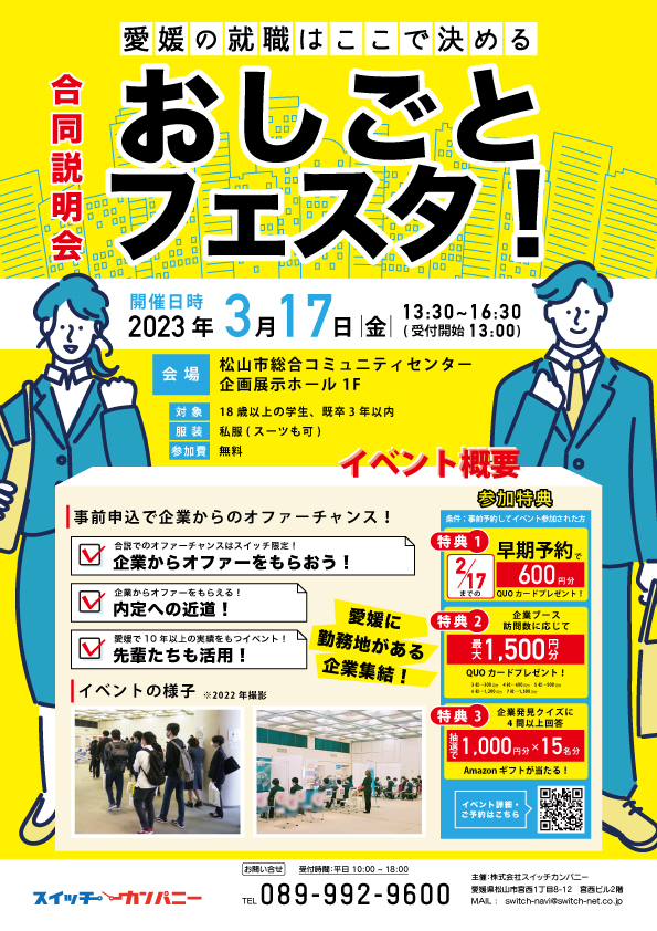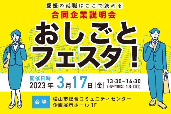 2023年3月17日に開催する対面イベント「合同説明会おしごとフェスタ!」に参加する企業15社が2023年3月10日に決定しました!