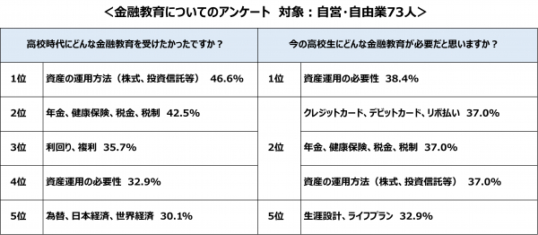 今回は、調査の対象800人中320人の回答があった会社員の方が、自分自身の高校時代に受けたかった金融教育と今の高校生に必要と思う金融教育に違いがないか上位5位を比較しました。