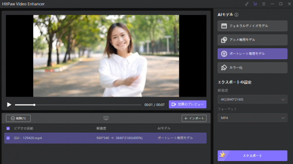 HitPaw Video Enhancerを使った動画を高画質化する方法は次の通りです。