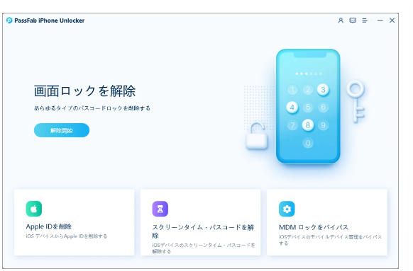 PassFab iPhone UnlockはiPhone/iPad/iPodの画面ロック、スクリーンタイムパスコード、Apple IDのロックを解除す