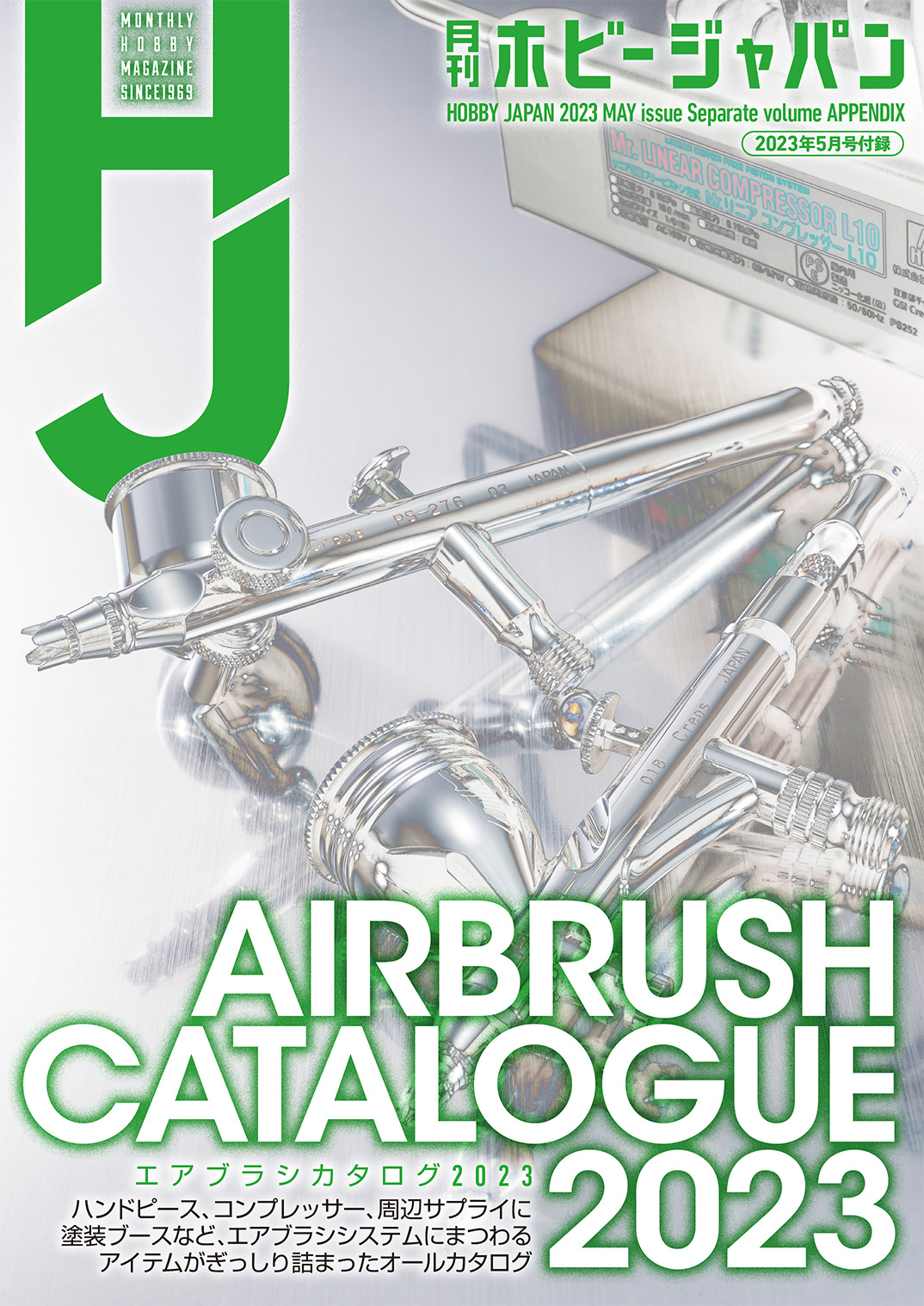 「5月号」の別冊付録「エアブラシカタログ2023」では、各メーカーから発売されているエアブラシの関連アイテムを写真付きでご紹介!
