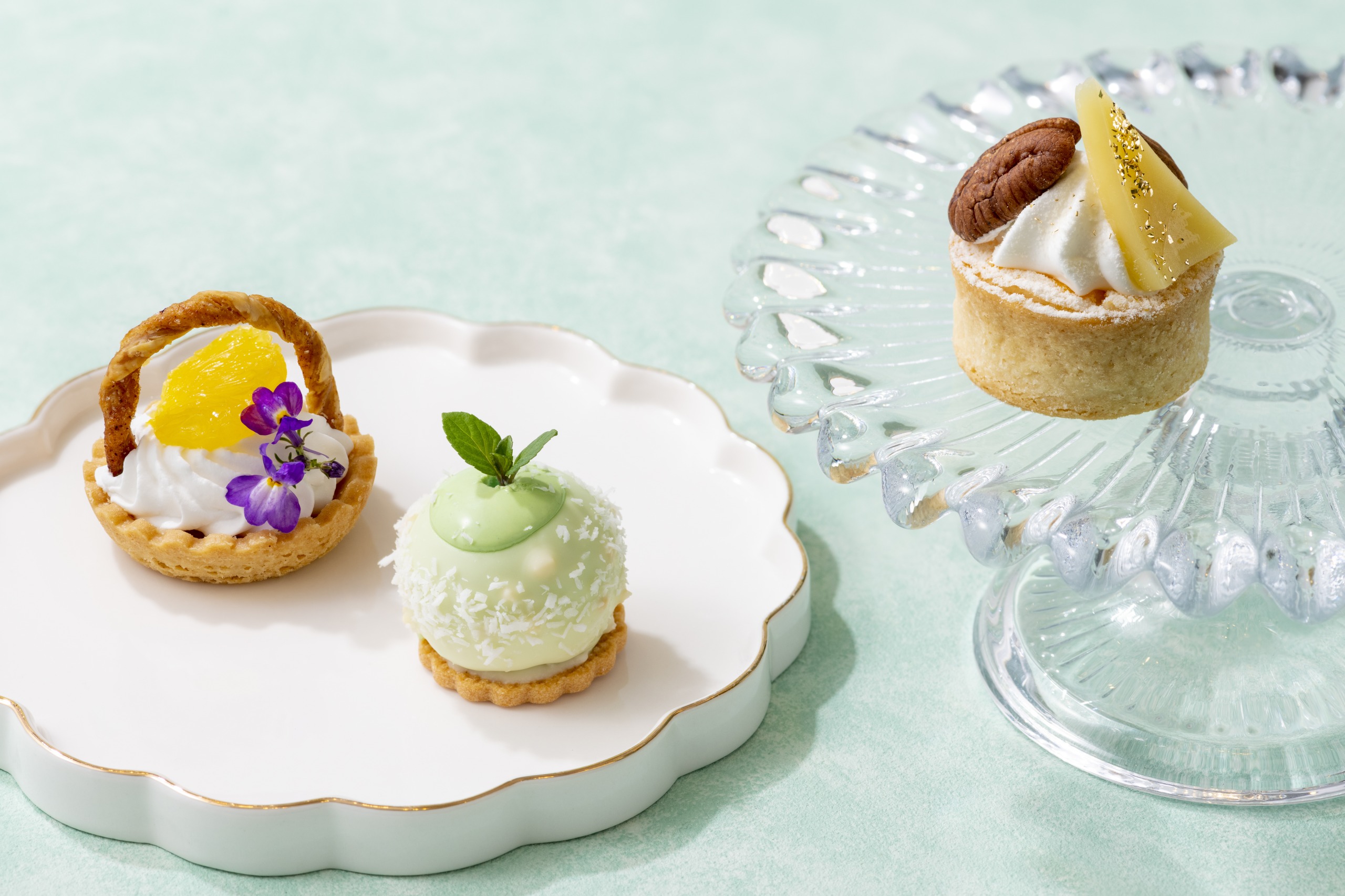 今回のアフタヌーンティーは、希少なクラウンメロンや赤肉メロン、マスクメロンなどを使用した、さまざまなテイストでメロンを堪能いただけるアイテムがラインナップ。さらに夏みかん、そら豆、グリーンピースなど、初夏に美味しい食材を活かしたデザートやセイボリー(軽食)をご用意しました。営業時間内であれば時間制限がないので、全14種類のメニューをお楽しみいただきながら、フリーフローの紅茶・コーヒーとともにごゆっくりとお寛ぎいただけます。