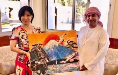 3月18日アラブ首長国連邦の7つの首長国ラス・アル・ハイマー首長国のマジッド殿下が、一般社団法人ユーラシア国際映画祭代表理事で画家、増山麗奈の作品を購入した。