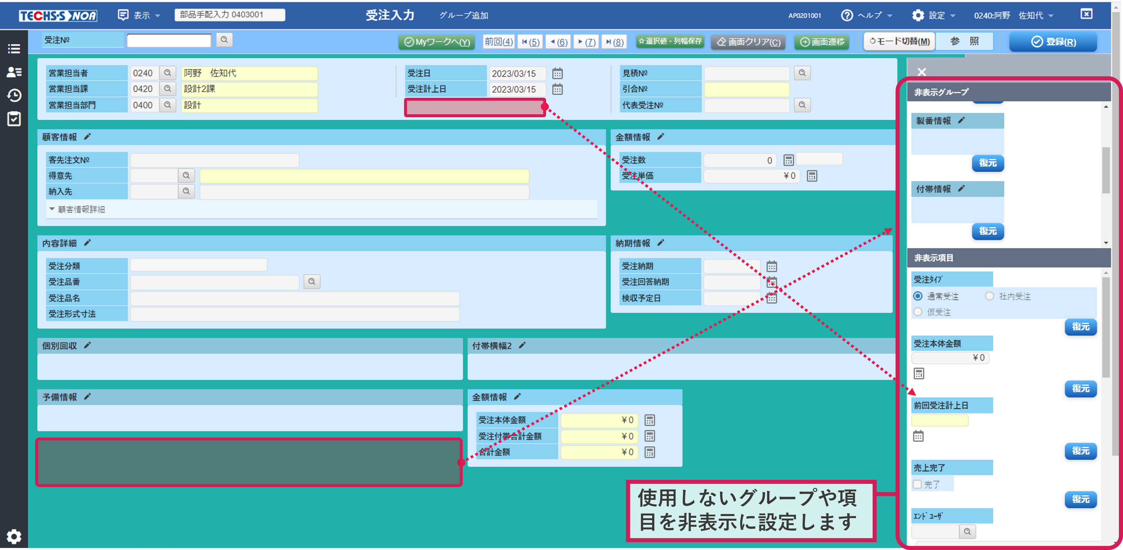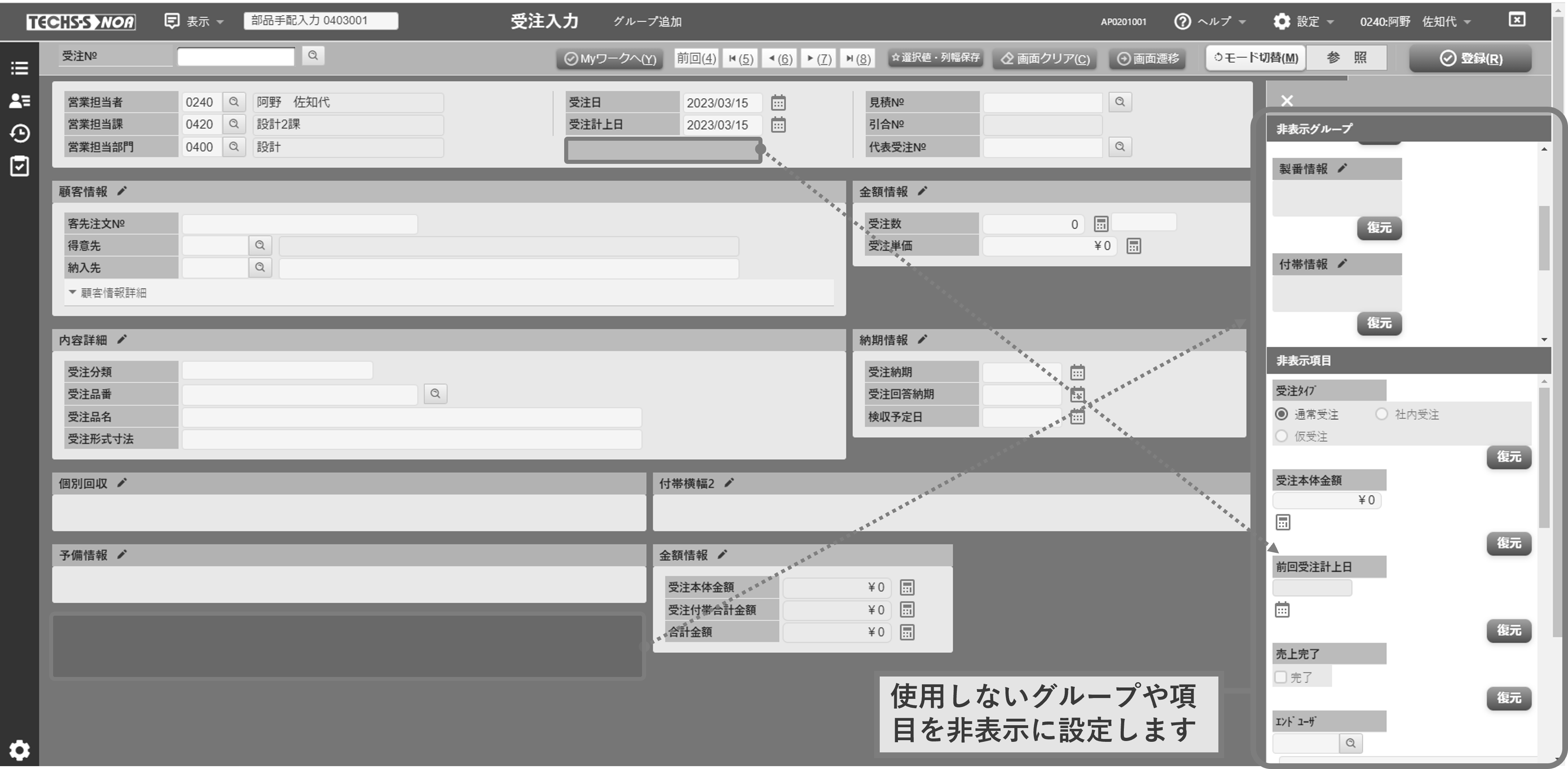 【TECHS-S NOA画面イメージ】画面レイアウト変更機能