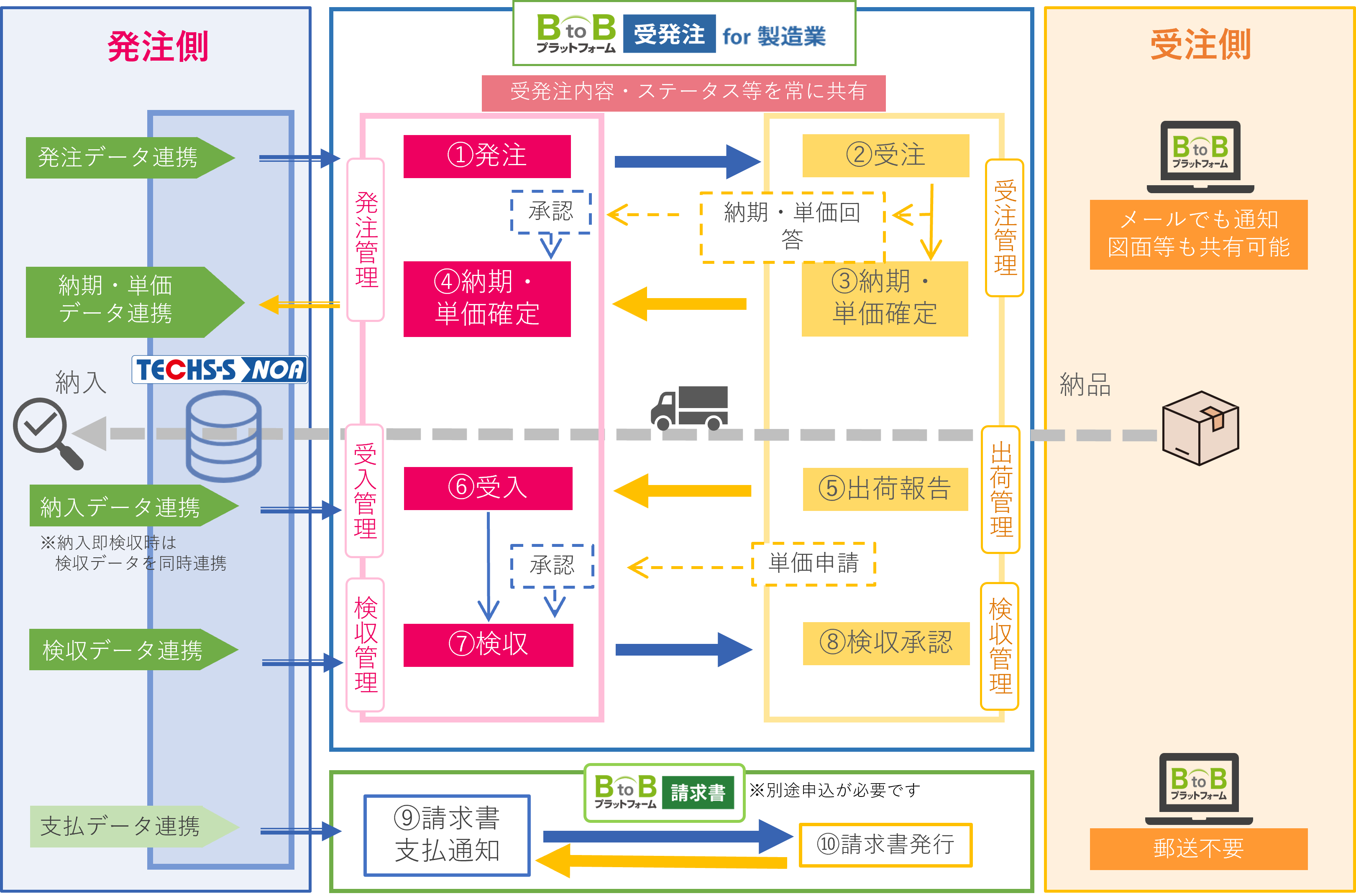 「BtoBプラットフォーム 受発注 for 製造業」の契約が別途必要です。