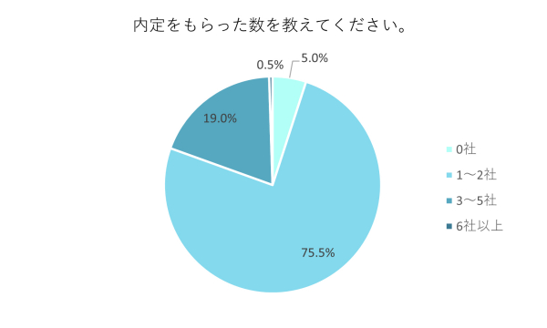 「0社」5%、「1~2社」75.5%、「3~5社」19%、「6社以上」0.5%でした。