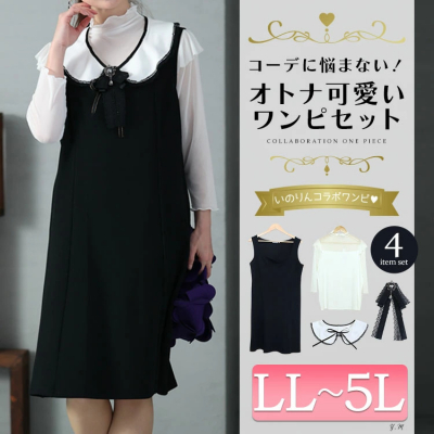 セットのメインのシンプルな黒ワンピースは、スッキリ着痩せが叶うAラインシルエット。