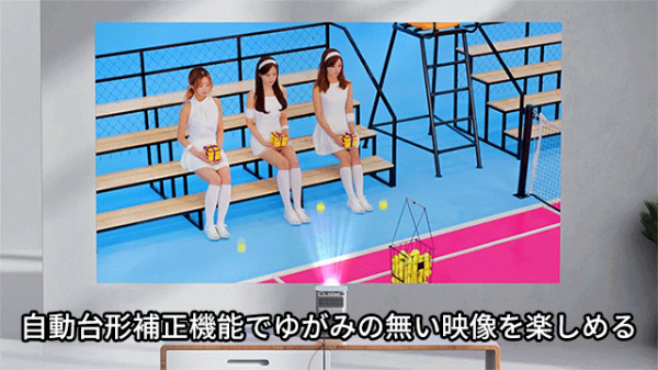 台形補正機能が搭載されています。斜め横の位置から投影しても、画面の四隅が自動的に調整して、見やすい四角形に補正できます。