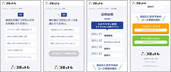 (4)質問回答から抽出された自分に必要な4つのスキルと、診断に基づいたコミュトレのコース学習の内容が表示
