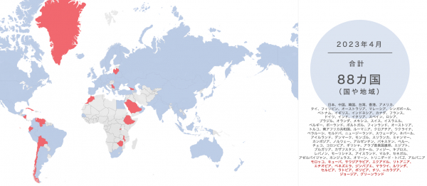 前回のアップデートでは、日本を含め71の国や地域まで可能となりましたが、今回のアップデートでは、「モロッコ、キューバ、サウジアラビア、エクアドル、リトアニア、エチオピア、ベネズエラ、ジンバブエ、マラウイ、ルワンダ、セルビア、ラトビア、ボリビア、チリ、ニカラグア、ジョージア、グリーンランド」の17カ国が追加され、合計で88の国や地域の分析が可能となりました。新型コロナウイルスの収束に伴い、訪日外国人の増加が期待されますが、今回のアップデートに伴い傾向の把握などを更に精度高く実施できるようになりました。