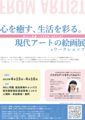 BUSCA合同会社が運営する、アーティストが自身の作品を販売できるプラットフォーム「FROM ARTIST」と学研のサポート校「WILL学園」は、「心を癒す、生活を彩る。現代アートの絵画展&ワークショップ」と題し、ワークショップとコラボ展を実施します。