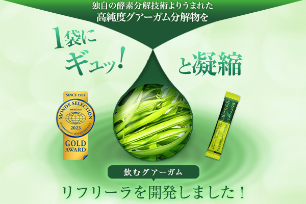 株式会社イワミズ(大阪府大阪市、代表取締役:岩水 隆志)が販売を行っている機能性表示食品「飲むグアーガム リフリーラ」(https://refreer.jp/)が、2023年4月3日に2023年度モンドセレクションで金賞を受賞しました。
