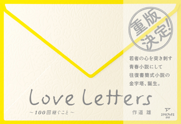 ステキコンテンツ合同会社(本社:東京都中央区 代表:中村 航、以下 ステキコンテンツ、当社)は、同社が運営する出版社ステキブックスより発売中の小説『Love Letters~100回継ぐこと~』の重版が2023年4月10日に決定した事をお知らせします。発売から間もなくSNS等でも話題沸騰の本書、この機会ににぜひお求めくださいませ。