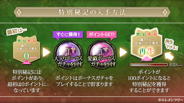 ※誕生日特別秘記は、ボーナスガチャをプレイして獲得すると読むことができます。