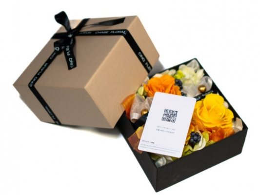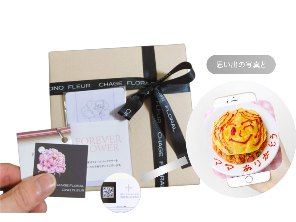 長持ちするプリザーブドフラワーのボックスフラワーを、いつでも振り返ることができる動画と一緒に "ありがとう" を伝えることができます。