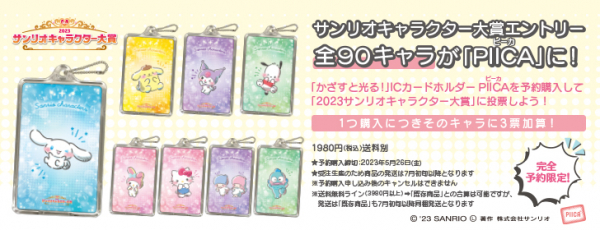 「2023年サンリオキャラクター大賞」は、今年で38回目を迎えるサンリオキャラクターの人気投票企画です。450を超えるサンリオキャラクターの中から選ばれた90キャラクターがエントリーし、WEBやサンリオショップなどからの投票数により順位を決定するもので、サンリオファンにとっての一大イベントになっています。「PIICA(ピーカ)(R)+ICカードホルダー」は、昨年の「2022年サンリオキャラクター大賞」ではエントリー全80キャラクターを発売し好評だったことから、今回のコラボレーション企画も実施することになりました。