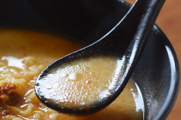 職人たちは日々、「どの程度の辛さが、最も旨味と辛味のバランスが良いか」を探究し続けて、数え切れないほど試食を繰り返してきました。探究の末にたどり着いた、旨味と辛味の黄金比が店舗でご提供している秘伝のたれ「基本」で、更に、辛さを最大限に残しながら、とんこつラーメンを美味しくお召し上がりいただけるのが「2倍の辛さ」でした。