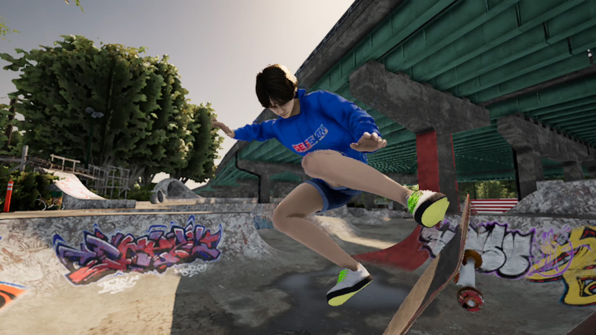 前後それぞれの足を2本のスティックで操作し、重心を細かくコントロールする非常にリアルな操作性。さらに、滑らかさと没入感を重視して開発された、リアルな物理エンジンを採用しました。実際のスケボーと同じように、初めてのキックフリップを成功させるためには長い時間の練習が必要となりますが、一度マスターすれば自由自在に技を繰り出すことが可能になります。