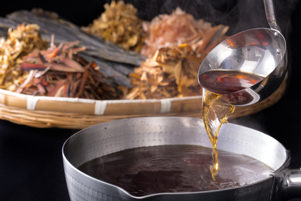 吟味した削り節と国産昆布などの天然素材を黄金率で配合を変え、地下水から汲み上げた鈴鹿山系の天然水を炊き出した基だしに、濃口と薄口の2種類の醤油をブレンドしています。スッキリ淡麗な味わいの中に、魚介系の深いうま味を感じるスープとなっていて、自家製麺との相性も抜群です。