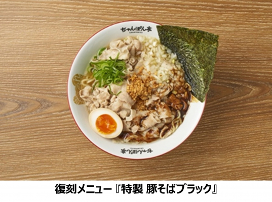 さらに、過去人気のあったメニューより、熟成味噌の風味豊かな『味噌ちゃんぽん』、焦がしにんにく香る『豚そばブラック』が復刻し、往年の「ちゃんぽん亭」ファンにも嬉しいラインアップとなっています。