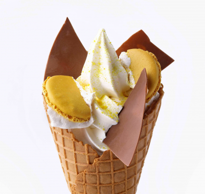 これまで同様、濃厚なソフトクリームに『Made in ピエール・エルメ』を代表するマカロンとともに焼き上げたメレンゲや、薄く繊細な口あたりのチョコレート、ワッフルコーンのアクセントが加わり、重層的な味や食感をお楽しみいただけます。