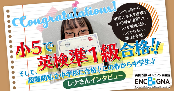 オンライン英会話ENC/GNAはこども英会話と英検5級~1級合格を目指す受験生に特化したオンライン英会話サービスです。英作文添削レッスンができる英検合格特訓コースでは不得意分野の克服や英語4技能力をバランスよく強化できます。