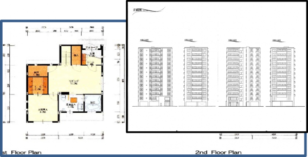 建設業界では一般に、その長い産業の歴史の反映として、紙媒体での図面保有が圧倒的に多い状況となっています。この新サービスは、この点に対応したDXサービスです。お手元の紙図面(平面図・立面図・断面図)をスキャナーでPDF化し、当社の専用URLに入れるだけで、高品質な3Dデジタルモデルがスピーディーに作成されます。目安として、総床面積1000m2の建物の3D化が2日程で可能です。
