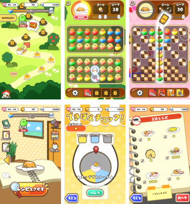 シリーズ累計500万ダウンロード以上の人気スマホゲームである本ゲームは、ゲーム内で入手できるレシピを使って調理を行い、1,000種類以上の様々な「ぐでたま」を集めていくというシリーズお馴染みの遊びはそのままに、最新作である本ゲームからは新たにパズルゲーム要素が追加されました。簡単操作で子供から大人まで誰でも気軽に遊べる本ゲームにぜひご期待ください!