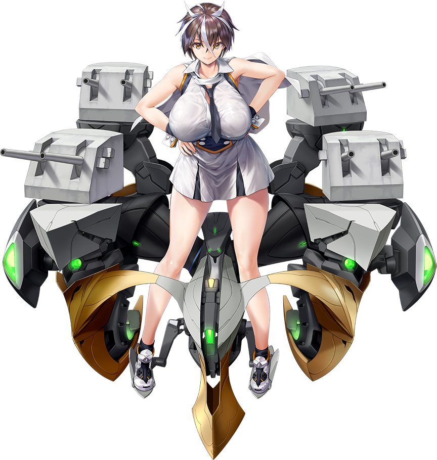 前進あるのみの[マーメイデン]の盾、ガラテアです。仲間を守るため、体を張って突撃し、敵の勢いを削ぎます。彼女は艦船に搭載された両用砲で敵の動きを封じたり、撃退したりして、与えられた任務を最後までやり遂げます。