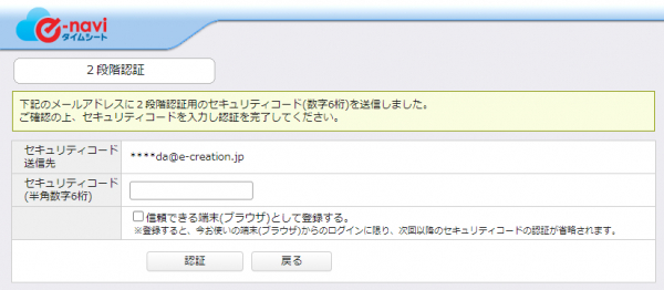 ■スタッフWEB(PC) 2段階認証画面