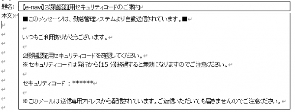 これにより、従来のIDとパスワードによる認証に加えて、登録メールアドレス宛に送信されたセキュリティコードによる認証も行えます。