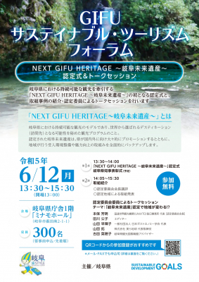 岐阜県では、持続可能な観光のモデルとなり、かつ将来的に世界に選ばれる訪問先となり得る観光プログラムを「NEXT GIFU HERITAGE~岐阜未来遺産~」として認定する新制度を、令和4年6月にスタートさせました。