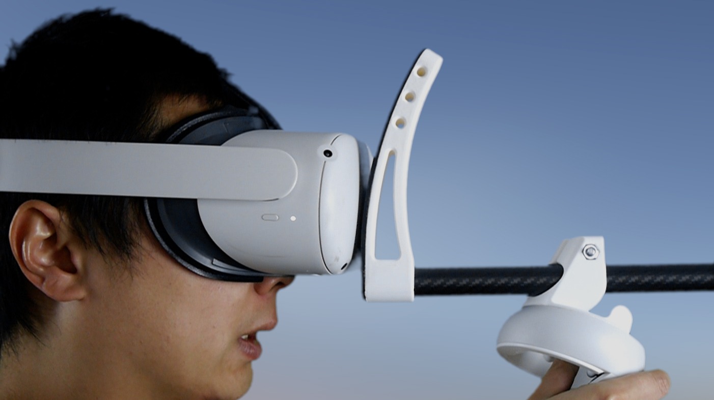 「GUNFACE」はMeta社のVRヘッドセット「Meta Quest 2」のコントローラーをスティックに固定することにより、コントローラーの直線上への配置を実現。正確かつ安定したゲーム操作を可能とします。