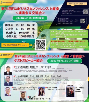 5月18日に第94回EGAビジネスカンファレンスin TOKYOが開催され、講演会にはベトナム商工会議所の副会頭であるボー・タン・タインが出席した。同じくベトナム商工会議所カントー支部所長のグェン・フォン・ラムが中心となりベトナム人経営者の方々が来日した。