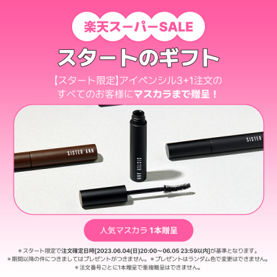 累計販売数300万本を突破したSISTER ANNのヒット商品「ウォータープルーフペンシルアイライナー」の3+1商品を6月4日(日)と5日(月)にご購入いただいた方へ、どんな目元にも滲まず密着する「スマートパワープルーフマスカラ」をプレゼントいたします。