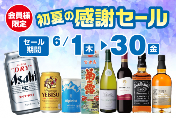 全国に188店舗で酒の専門店をチェーン展開する株式会社リカーマウンテン(本社:京都市)は、6月1日(木)~30日(金)まで、深夜営業店舗などを除く一部店舗で「会員様限定 初夏の感謝セール」を開催いたします。
