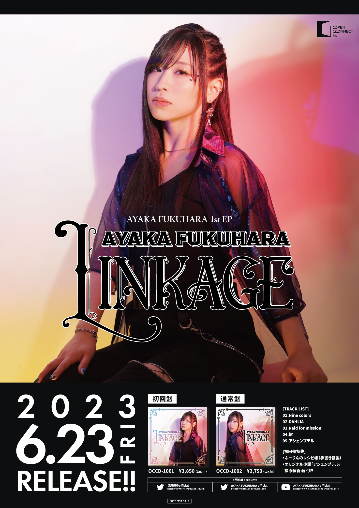 株式会社OPEN CONNECT(本社:東京都中野区 代表取締役社長:松永 克哉)が運営するレーベルOPEN CONNECTより、声優 福原綾香の初ミニアルバム”AYAKA FUKUHARA 1st EP LINKAGE(https://open-connect.tokyo/fukuharaayaka/)”が2023年6月23日(金)に発売する。