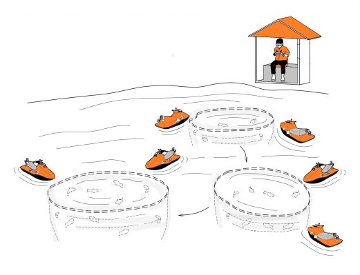 さらに、自動運転機能を組み合わせることで、マリンドローンの無人化が実現します。これにより、養殖プールの巡回やえさの補給、海上物流の自動化が可能となり、労働力の削減と業務の効率化が実現されます。悪天候時でも自動航行するため、物流の滞りを最小限に抑え、迅速なサービス提供が可能となります。