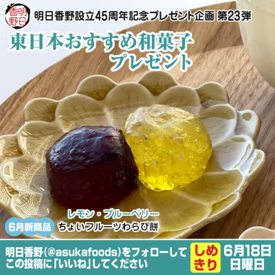2023年6月5日より、45周年キャンペーンの第23弾「東日本おすすめ和菓子プレゼント」を開始しました。