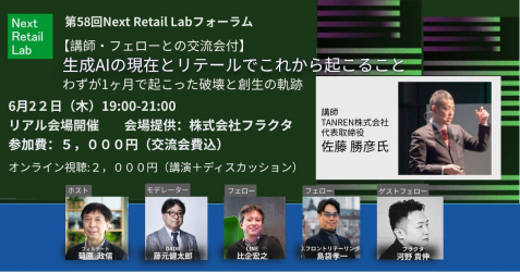 テーマ: 「生成AIの現在とリテールでこれから起こること ~わずか1ヶ月で起こった破壊と創生の軌跡~」