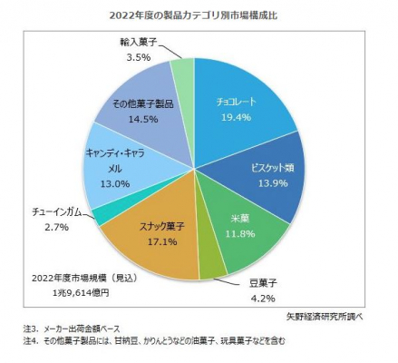 株式会社矢野経済研究所(代表取締役社長:水越孝)は、国内の流通菓子市場を調査し、製品カテゴリ別の動向、参入企業の動向、将来展望を明らかにした。