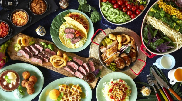 朝食は「WELCOME TO OKINAWA CITY!(ようこそ沖縄市へ。)」をコンセプトに、沖縄とアメリカの食文化を混ぜこぜにした朝食ビュッフェを提供します。沖縄そばをはじめとした郷土料理のほかに、ビーフステーキやグリルチキン、タコスなどをご用意します。