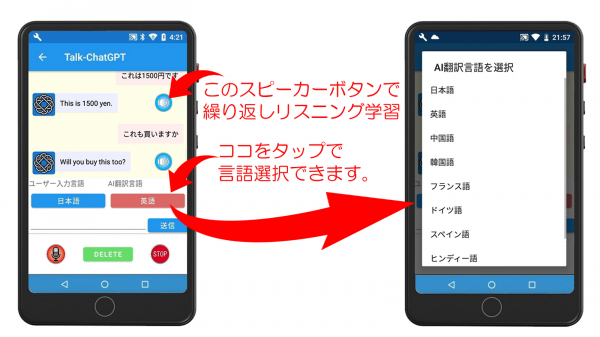そこで、外国人、学生さん、海外ビジネスで語学学習をされる方のためにいろんな使い方ができるよう、入力と回答の言語を選択できるようにプログラムいたしました。