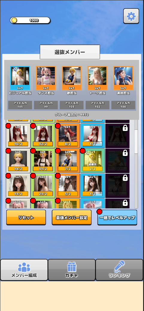 「アイドルガチャコレクション」は、AIの力を駆使して生み出された架空のアイドルたちをガチャで集め、育成して自分だけの最高のアイドルグループを編成するシンプルなガチャ収集ゲームです。